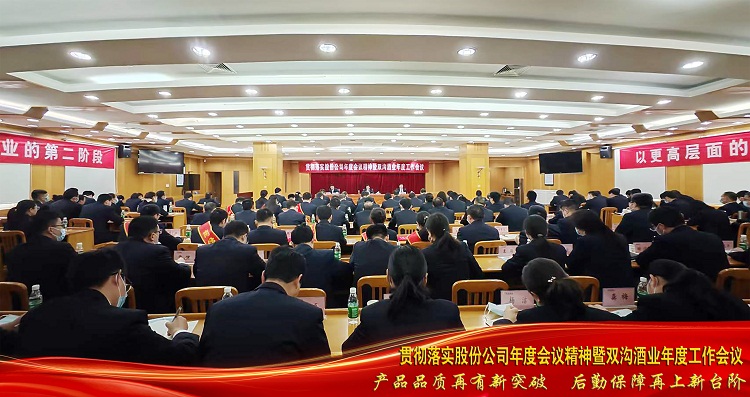 2023-02-21揚帆啟航新征程,踏浪前行向未來。2月21日上午8點18分,公司在辦公樓西二樓會議室召開貫徹落實股份公司年度會議精神暨雙溝酒業(yè)年度工作會議。股份公司副總裁、公司黨委書記、總經理李玉領對股份公司年度會議精神進行宣貫落實,并全面部署雙溝酒業(yè)2023年工作,公司黨委副書記耿忠祥總結回顧2022年工作成績,公司副總經理崔鳳元主持會議,各部門、車間及派駐機構中層助理以上人員、班科長代表和受表彰的單位、員工代表參加會議。